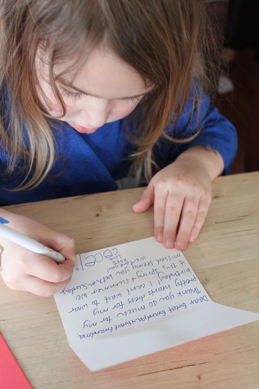Those bed heads kill me! Love them. While I’m making breakfast and putting away the dry dishes Cecelia signs her name on her thank you cards from her birthday.